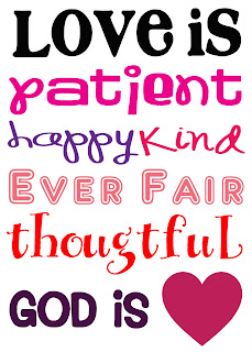 Subway Art has become very popular and I could not resist making my own. Having fun with Photoshop elements, I used cute fonts from Kevin and Amanda and put together my own Valentine’s Day Subway Art from the Bible verse found in 1 Corinthians 13.