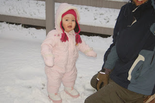 It snowed about 9 inches last night. We stayed in our pajamas until 3pm, watched a movie, ate pancakes, and played. It has been a great morning for us. We even braved the snow and checked the mail. Isabella really loves the snow! She loves looking at it at the back deck.