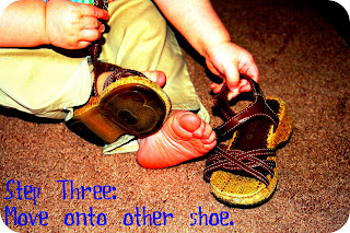 I went to a huge consignment sale on Friday at the Sacramento Convention Center. I purchased many great items (and spent no more than $6 per item) that were in like new condition. This pair of shoes was one fun find ($3) that my Princess can wear this summer. She is so cute! She tries so hard to put her shoes on by herself and she is now saying the word shoes. (Every new word is exciting in our home.)