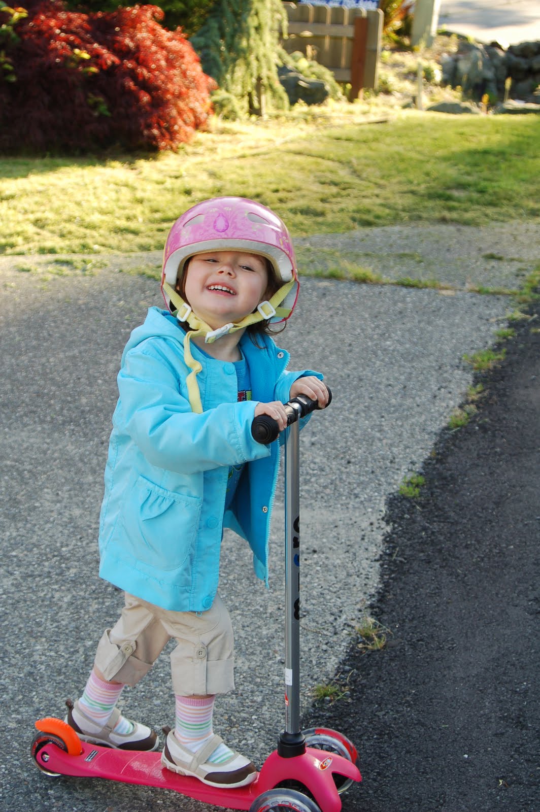When my husband was in London working he kept seeing moms pulling their kid around the city on scooters. He thought they were the absolute coolest. So he decided to find out where they were being sold, and brought a pink European scooter back home for our Princess.