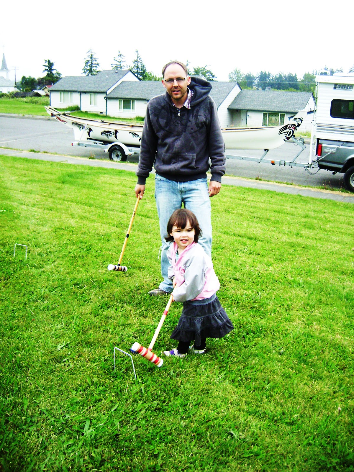We bought two folding takealong mattress pads (about twin size) from Costco for our big Canoe Journey this summer. I got a brilliant idea of putting one on the floor beside our bed for our Princess to sleep on at night.