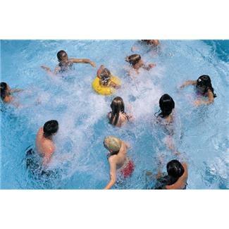 When we took off her swimsuit in the pool to wrap a towel around her, she jumped back in off the steps thinking she could swim without the flotation swimsuit. Nope. Not even close.