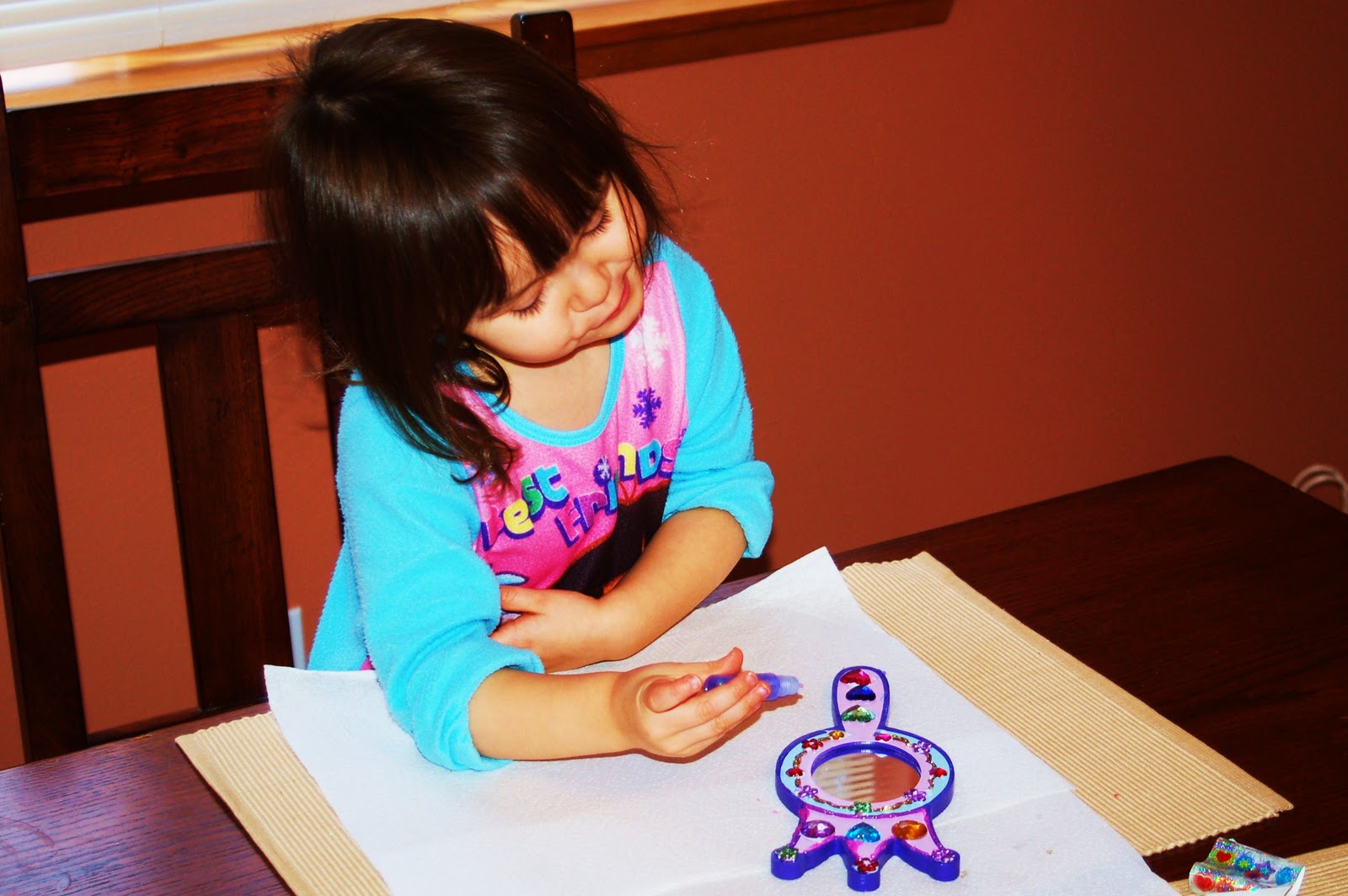 What fun her and daddy had decorating this mirror. Yes, you heard me right! Daddy helped her make this one! And they did a fantastic job.