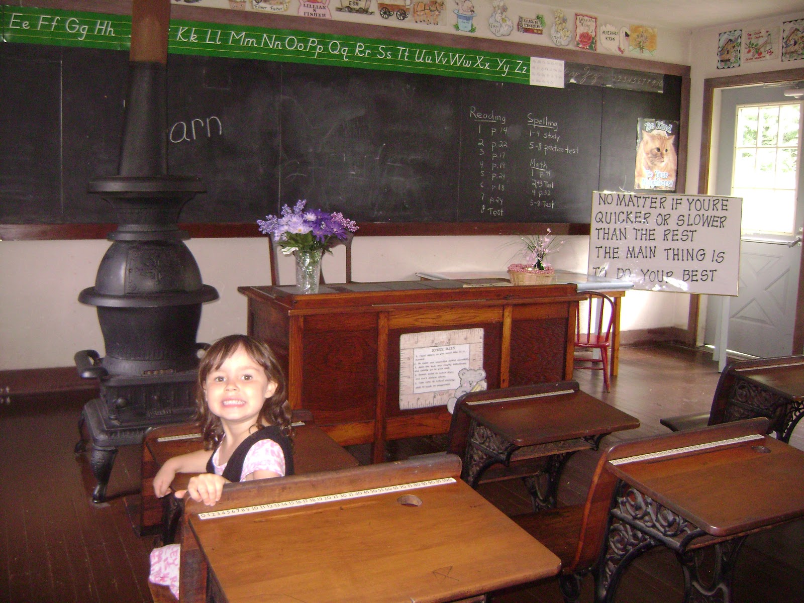 One building on the grounds was the Amish School House. My Princess really loved going in that building and sitting in the old fashioned desks. She asked her daddy to sit at the teacher’s desk and pretend to be the teacher. She, of course, was the student.