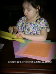 Step 1: Trace your child handprint on colored construction paper. I used 6 colors. Depending on how big you want to make the craft you can do more handprints.