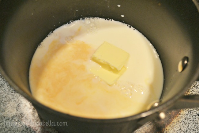 Directions Whisk all dry ingredients together. Warm the milk, butter, and vanilla extract in a sauce pan until the butter is melted. Gently stir in the dry ingredients and increase heat to medium high. Cook, and stir continually for 5 minutes. This gets thick pretty quickly – use less flour and more milk if you’d like this sauce to drizzle more easily.