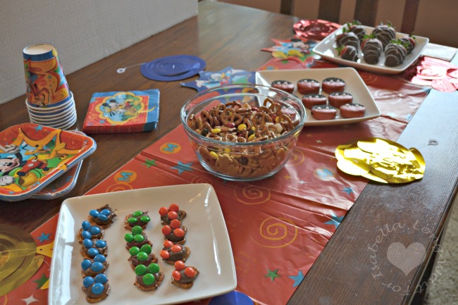 My preschooler loves Mickey Mouse and Disney Jr. and since Disney sent some great party supplies, I thought I’d make fun Mickey Mouse inspired snacks for our Easter party. I scoured Pinterest for ideas and wanted to publicly thank The Delightful Life for her idea of Mickey Mouse Pretzel Treats. As well as Trips with Tykes for her idea of Mickey Mouse Trail Mix. I included those ideas in my own Mickey Mouse treat round-up for Easter.
